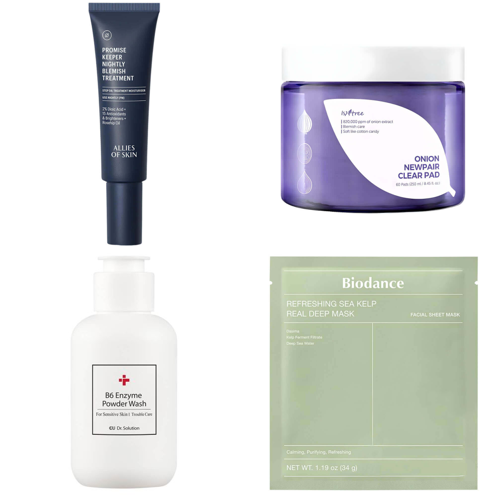 Все средства работают в гармонии друг с другом, дополняя и усиливая эффекты друг друга, благодаря уникальныму сочетанию природных антиоксидантов, витаминов и активных веществ, направленных на лечение воспаленной кожи и предотвращение появления дефектов (диоевая кислота, AHA и PHA кислоты, ниацинамид, экстракт красного репчатого лука, витамин С, транексамовая кислота, энзимы). Ночная маска мягко очищает поры, уменьшает воспаление и предотвращает появление новых ввысыпаний. Тонер-пэды обладают мощным антибактериальным действием и помогают быстро снять покраснения, успокоить раздражения и восстановить баланс кожи. Энзимная пудра бережно удаляет ороговевшие клетки и излишки себума, сохраняя гидролипидный барьер кожи, улучшает текстуру кожи, делая её ровной и гладкой. Гидрогелевая маска с активными веществами морских водорослей мгновенно освежает и увлажняет кожу, снимает раздражение и оказывает антиоксидантное действие.