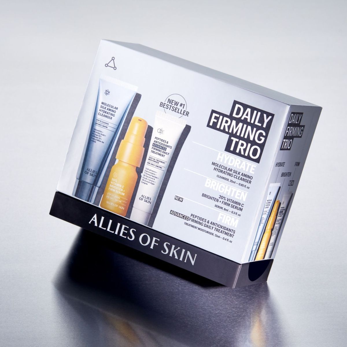 Откройте для себя высокоэффективную систему ухода за кожей от Allies of Skin с набором, который обеспечит укрепление, сияние и глубокое увлажнение вашей кожи.