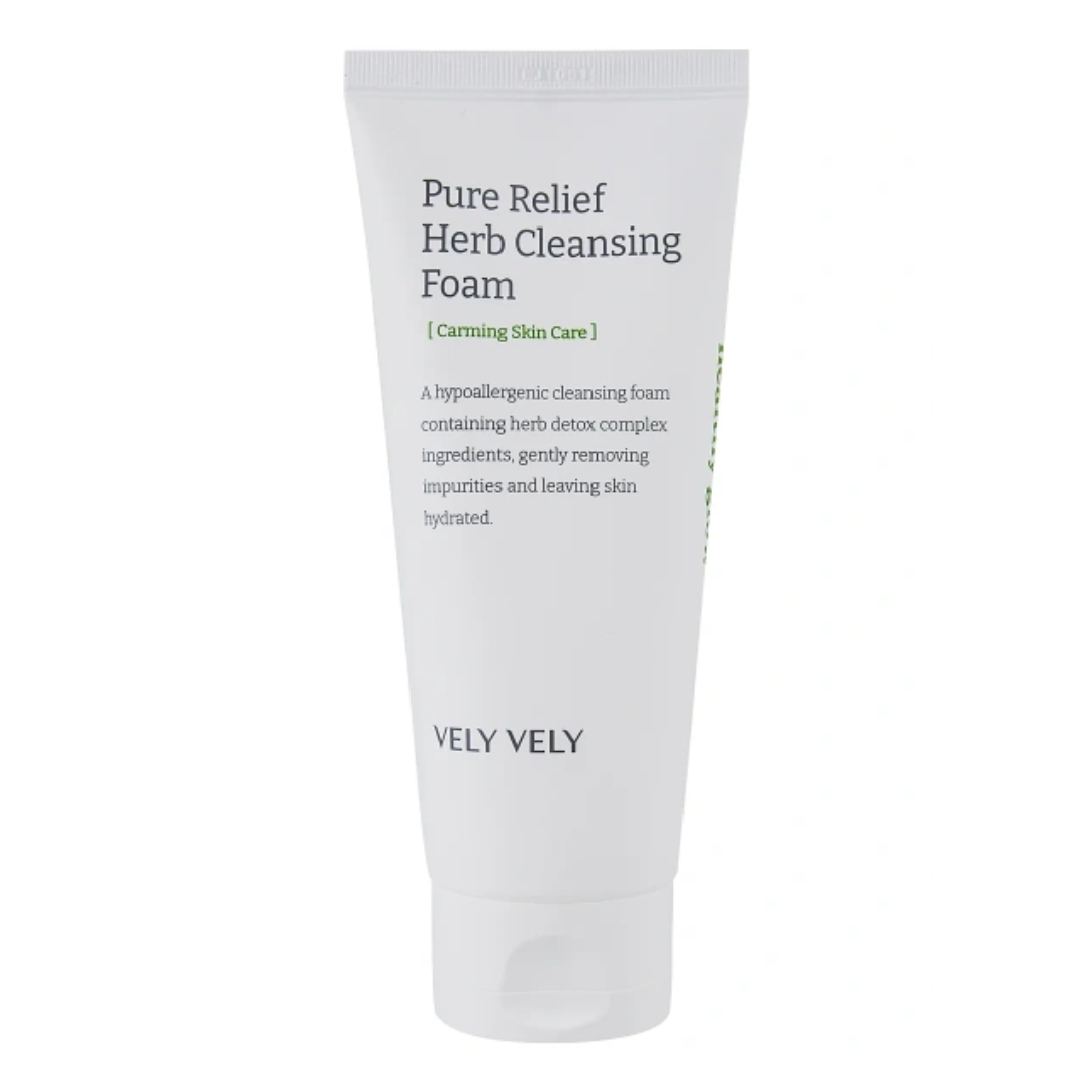 Vely Vely Pure Relief Herb Cleansing Foam оказывает нежное очищение, обеспечивает противовоспалительное и вяжущее действие, запускает процесс восстановления и детоксикации, устраняет гиперчувствительность, красноту и раздражения.
